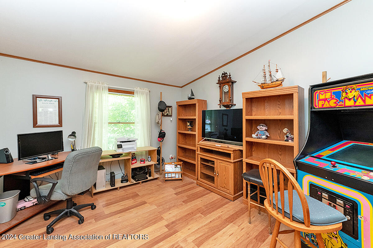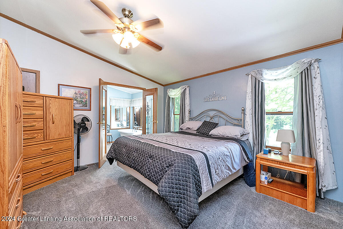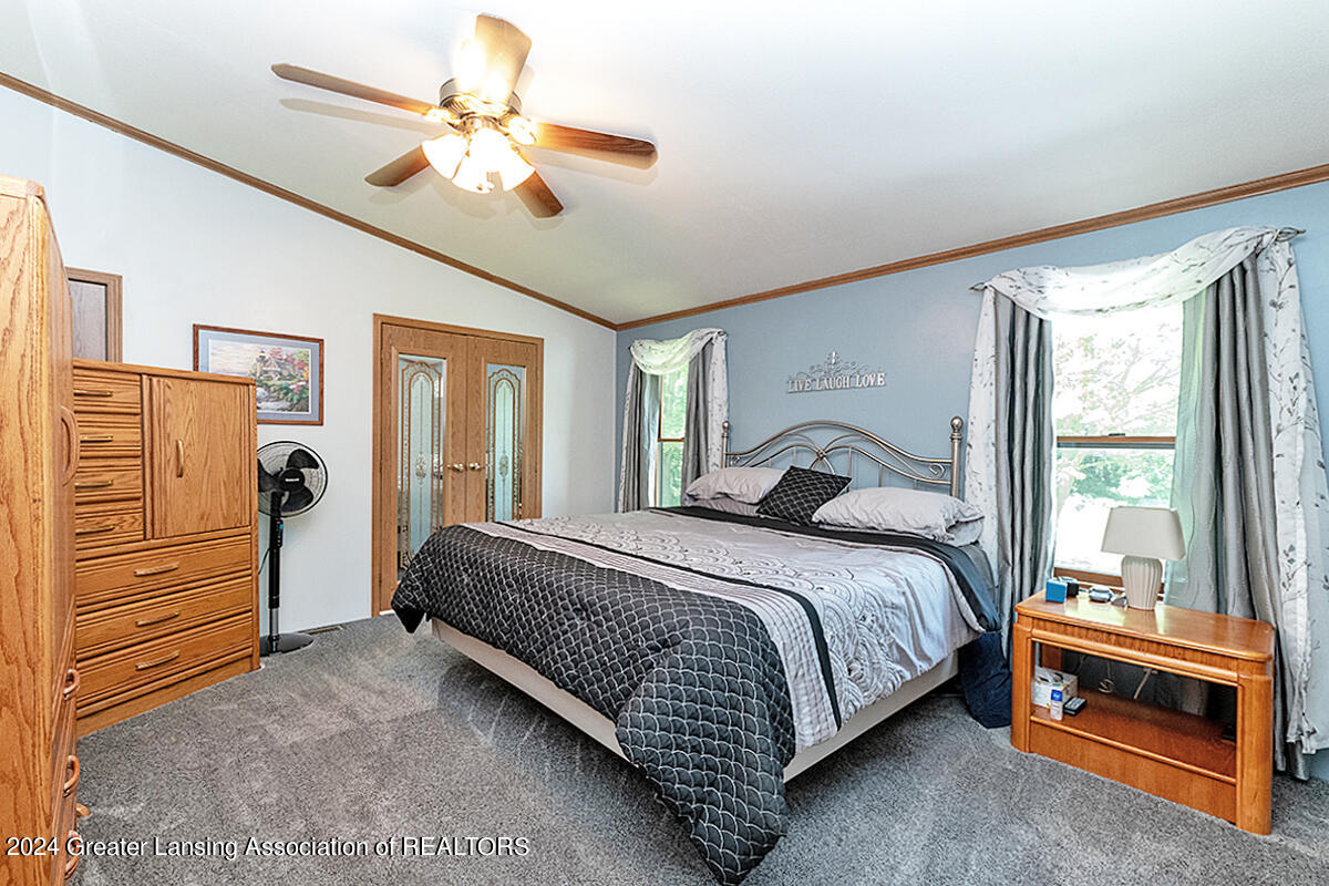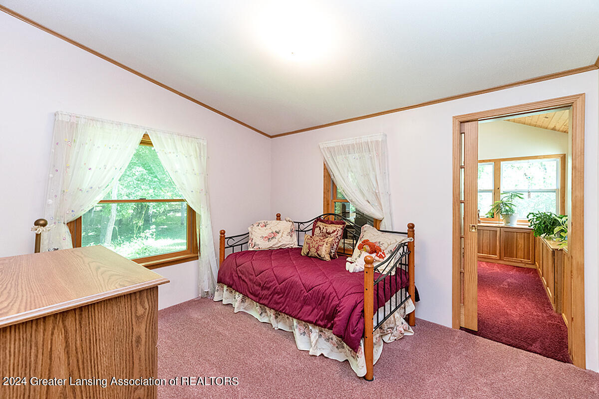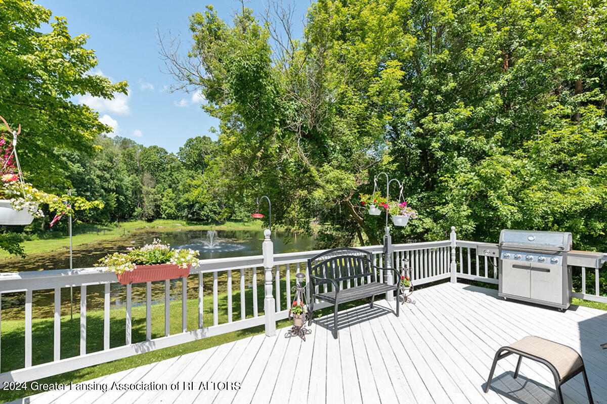 Welcome to 12400 Upton! This home on 2 acres includes a spring-fed pond, 24x32 pole barn, she-shed, attached 3-car garage and spacious exterior deck. The whole 2 acres is fenced-in. The home itself features an updated kitchen with quartz countertops, black stainless appliances and a walk-in pantry. There are 3 bedrooms, with the primary bedroom bathroom featuring tile flooring, walk-in shower, a skylight and a soaking tub. The home also has a bonus room off of one of the bedrooms for an added getaway space within the home. Other features include a sunsetter on the deck, personally curated flower gardens, water fountain in the pond. Come see for yourself, do not miss out on this wonderful home! Call for a private tour.