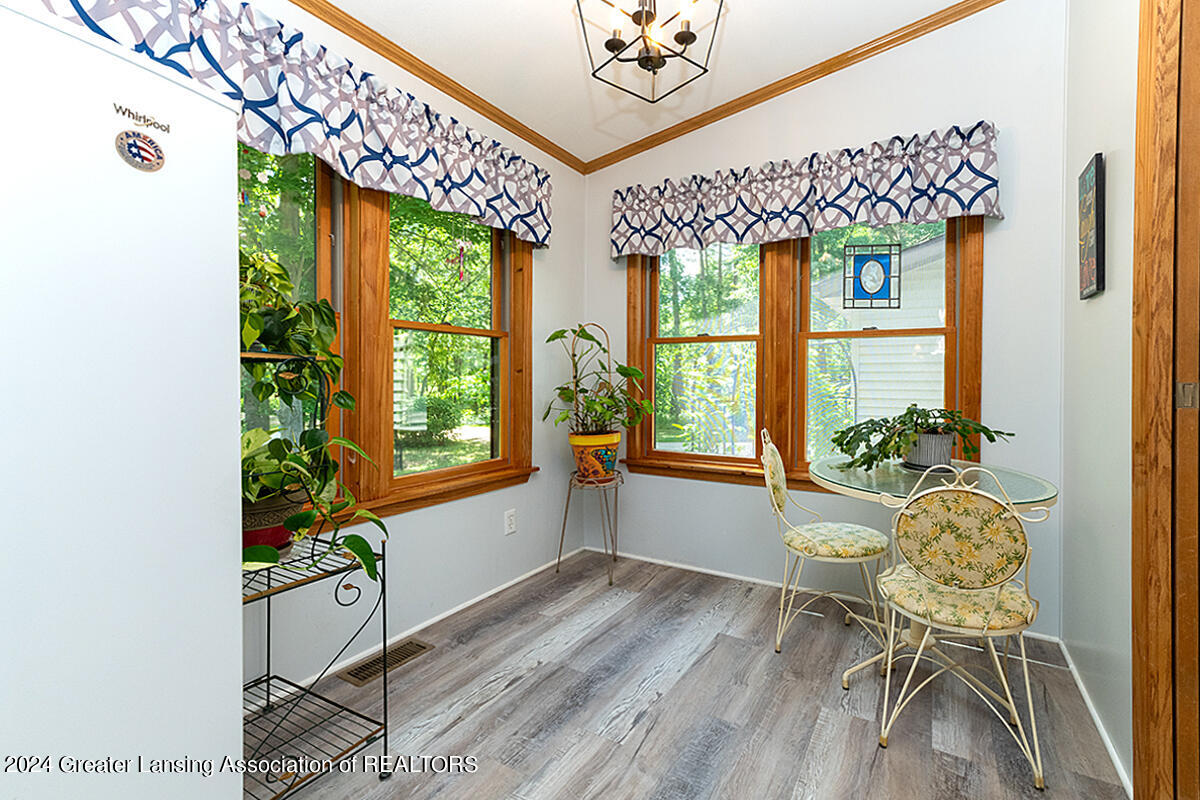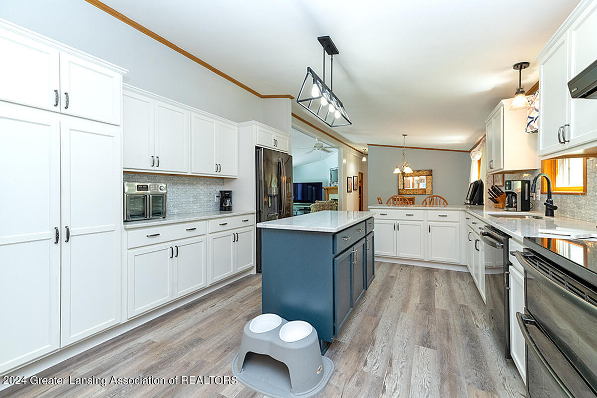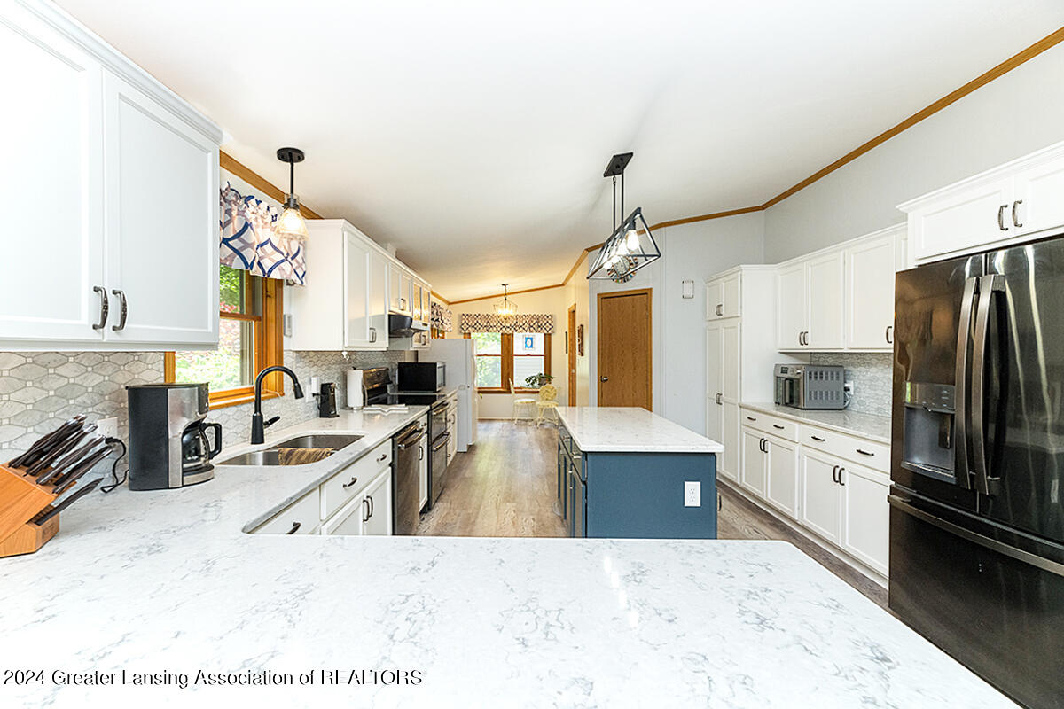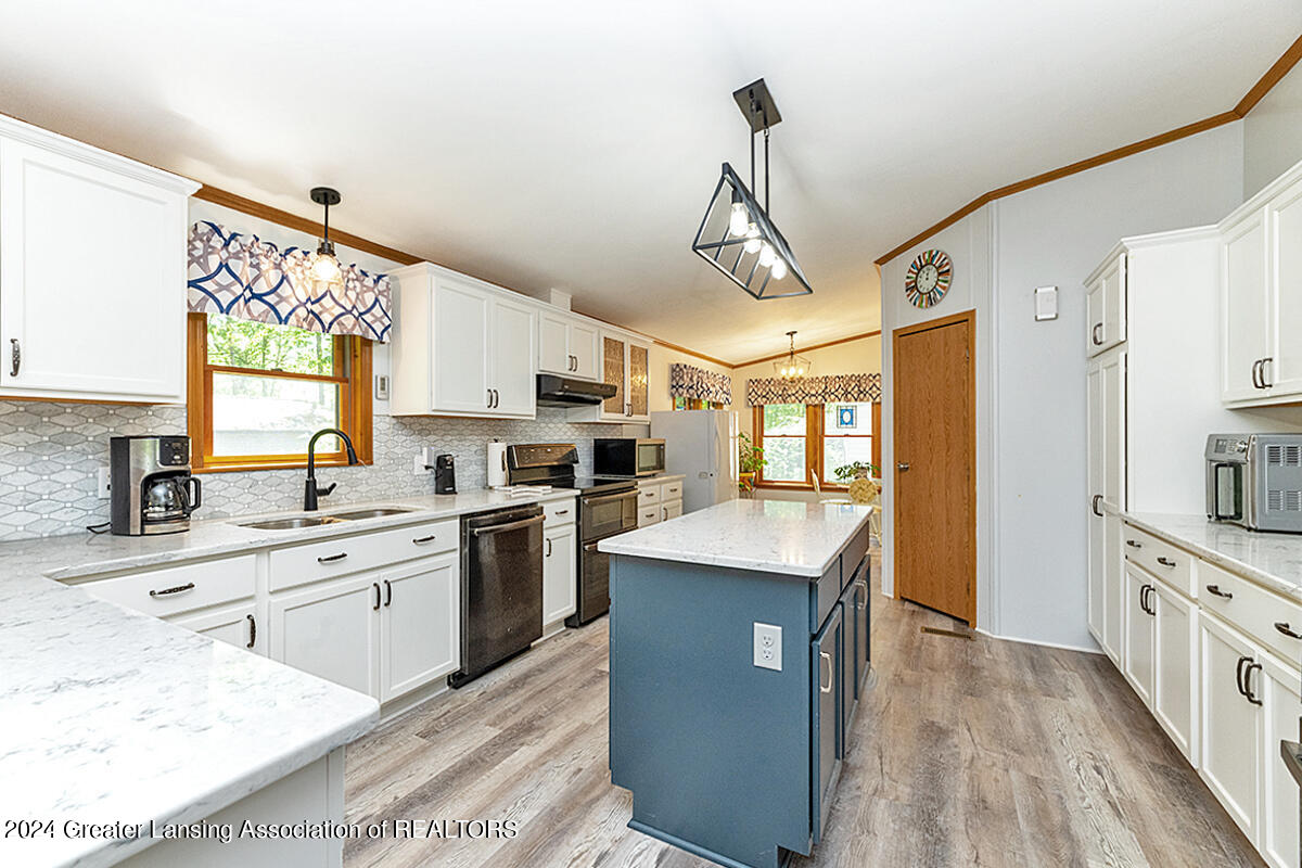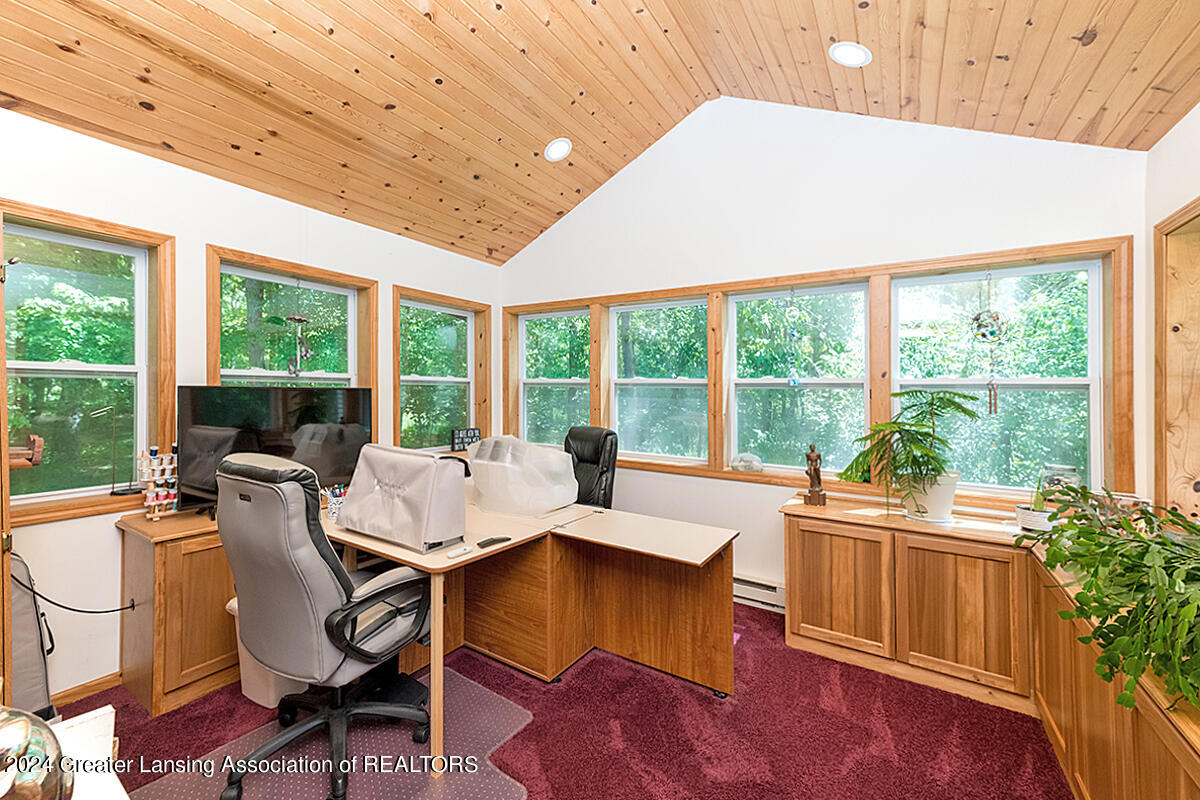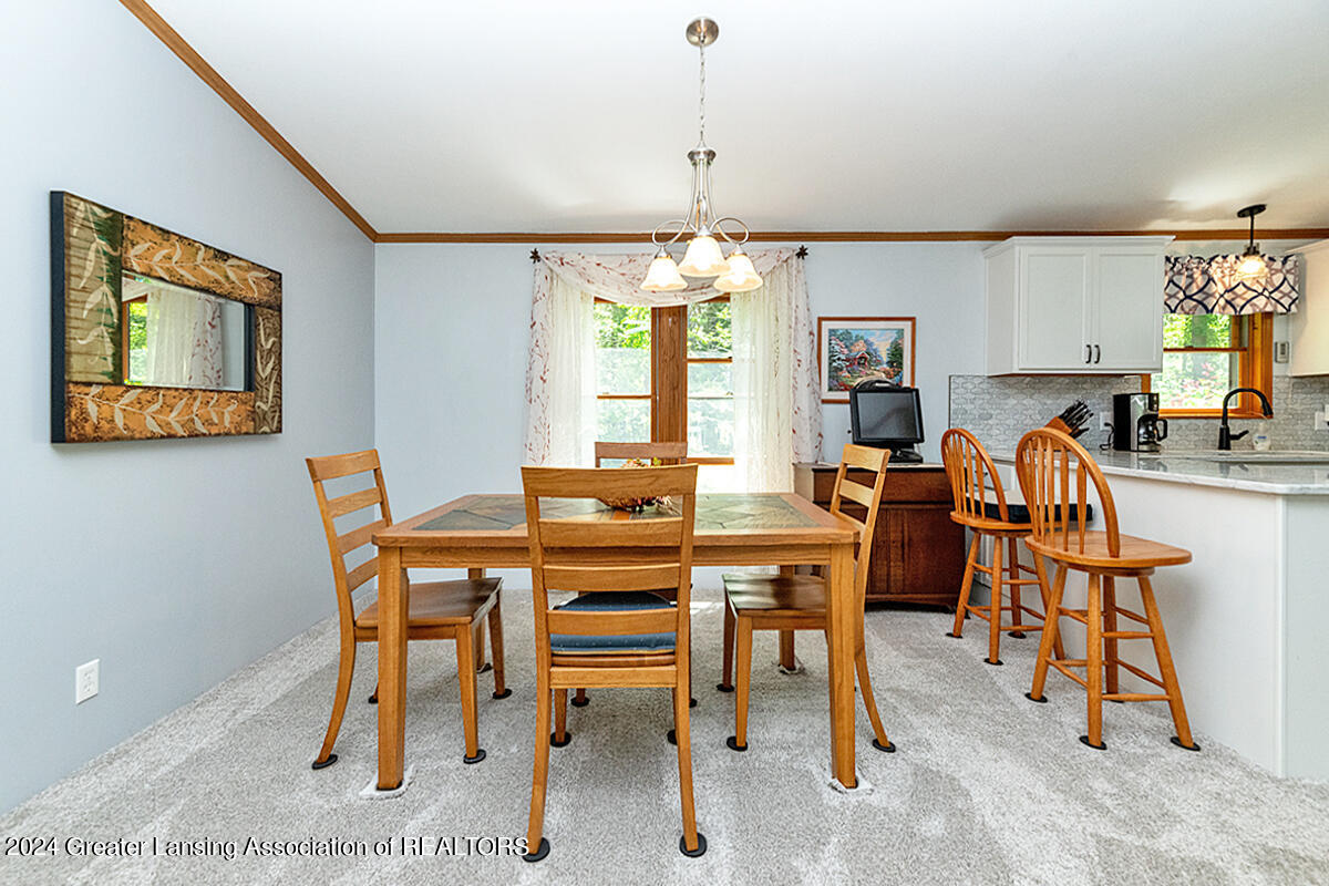 Welcome to 12400 Upton! This home on 2 acres includes a spring-fed pond, 24x32 pole barn, she-shed, attached 3-car garage and spacious exterior deck. The whole 2 acres is fenced-in. The home itself features an updated kitchen with quartz countertops, black stainless appliances and a walk-in pantry. There are 3 bedrooms, with the primary bedroom bathroom featuring tile flooring, walk-in shower, a skylight and a soaking tub. The home also has a bonus room off of one of the bedrooms for an added getaway space within the home. Other features include a sunsetter on the deck, personally curated flower gardens, water fountain in the pond. Come see for yourself, do not miss out on this wonderful home! Call for a private tour.